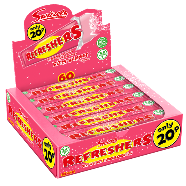 Swizzels Refreshers Strawberry Fizzy Sherbet Chew Bar 18g 20p 60 Pack