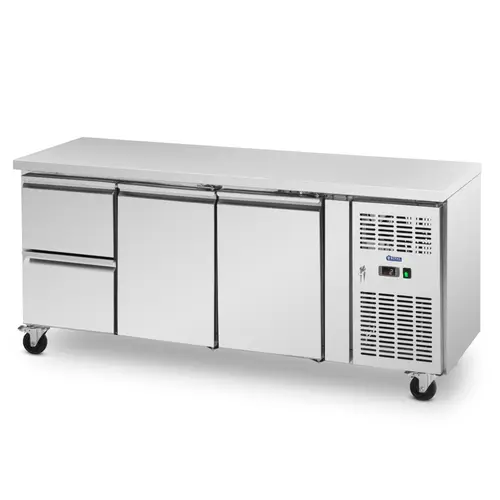 Table réfrigérée sur roulettes – 410 l – 2 compartiments – 2 tiroirs – 179,5 x 70 cm – Classe B – inox – Royal Catering