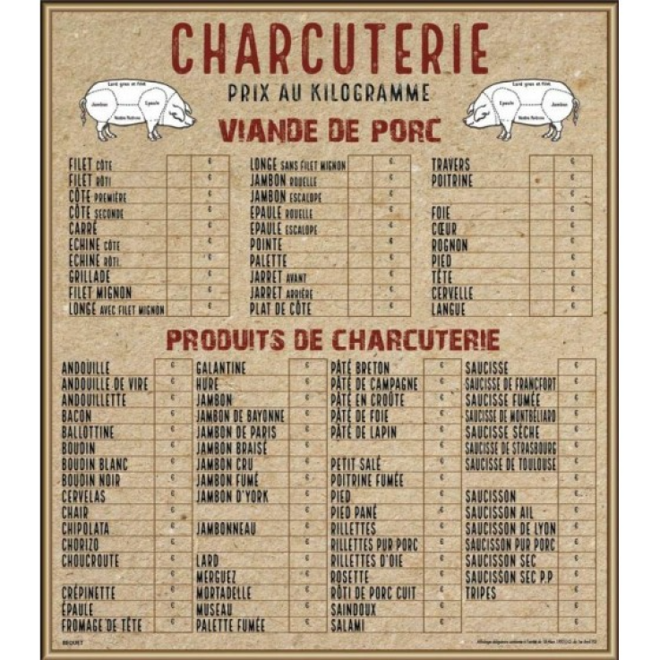 Tableau affichage prix charcuterie 70 x 80 cm – à l’unité