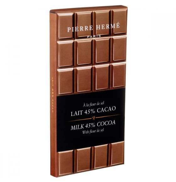 Chocolat au lait Pierre Hermé Paris à la fleur de sel (45% de cacao minimum, pur beurre de cacao).