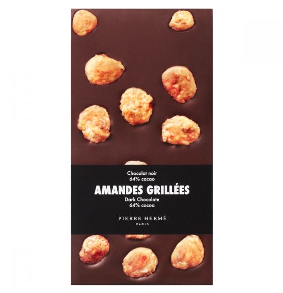 Chocolat noir 64% de cacao, amandes grillées.