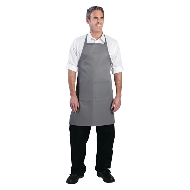 Tablier bavette gris Chef Works, pratique et de couleur vive, avec double poche et tour de cou réglable pour un ajustement parfait quelle que soit votre taille. Ce tablier bénéficie d’une bavette et de coutures renforcées aux zones de tension pour une grande durabilité, ainsi que d’un traitement de protection anti-taches.