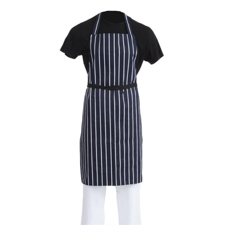 Ensure your clothes remain protected from splashes and spills at all times, with this high quality unisex blue and white striped bib apron. Boasting an exceptional length of 965mm, the bib apron offers great protection when cooking and preparing food, keeping your white chef’s outfit hygienic and in perfect condition all day long. Made from high quality polycotton, the kitchen apron is also incredibly durable and easy to clean, ensuring a long life in any professional catering environment. With its long braids, the striped apron can be effortlessly adjusted to suit your staff, …
