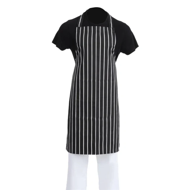 Les tabliers permettent au personnel de garder leur tenue propre pendant le service. Ce tablier rayĆ© noir et blanc Whites aide Ć  mieux dissimuler les taches et conserver une apparence soignĆ©e. Les longues tresses permettent de s’adapter Ć  n’importe quelle taille.