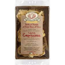 Tagliatelles Capricciose all’uovo – Tagiatelles de blé dur avec bord dentelé et œuf 250 g en boîte – Rustichella d’Abruzzo.