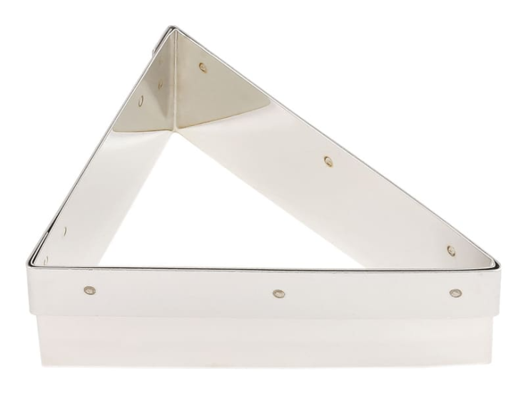 Découpoir avec ceinture de renfort pour la découpe au format adapté aux tartes triangulaires Mozaïk. Utilisable comme découpoir à sablé. En acier inoxydable.