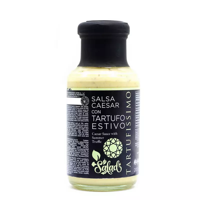 Tartufissimo Caesar Sauce with Summer Truffle is a gourmet reinterpretation of the famous Italian-American sauce often used as a salad dressing (Caesar Salad). Its fresh and summery flavor combined with truffles makes it perfect for making delicious and refined recipes in a short time. Being ready to use, in fact, it is ideal for those who don’t have much time to spend in the kitchen but still want to create original dishes for themselves or their guests. Try it in combination with salads or vegetables in pinzimonio. Tartufissimo is the line of premium quality products created by Giuliano Tartufi, a set of gourmet sauces and condiments in which the truffle is used to create tasty and original combinations.