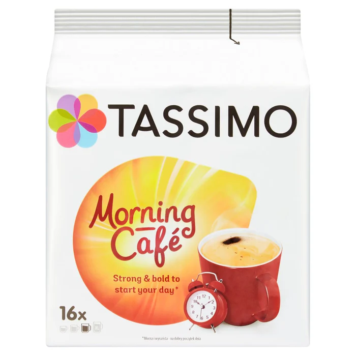 Wake up with a cup of breakfast blend Tassimo Morning Café Coffee, a strong & bold to start your day – the perfect AM pick-me-up. Tassimo Morning Café, Breakfast blend, Strong & bold, 16 Servings per pack.