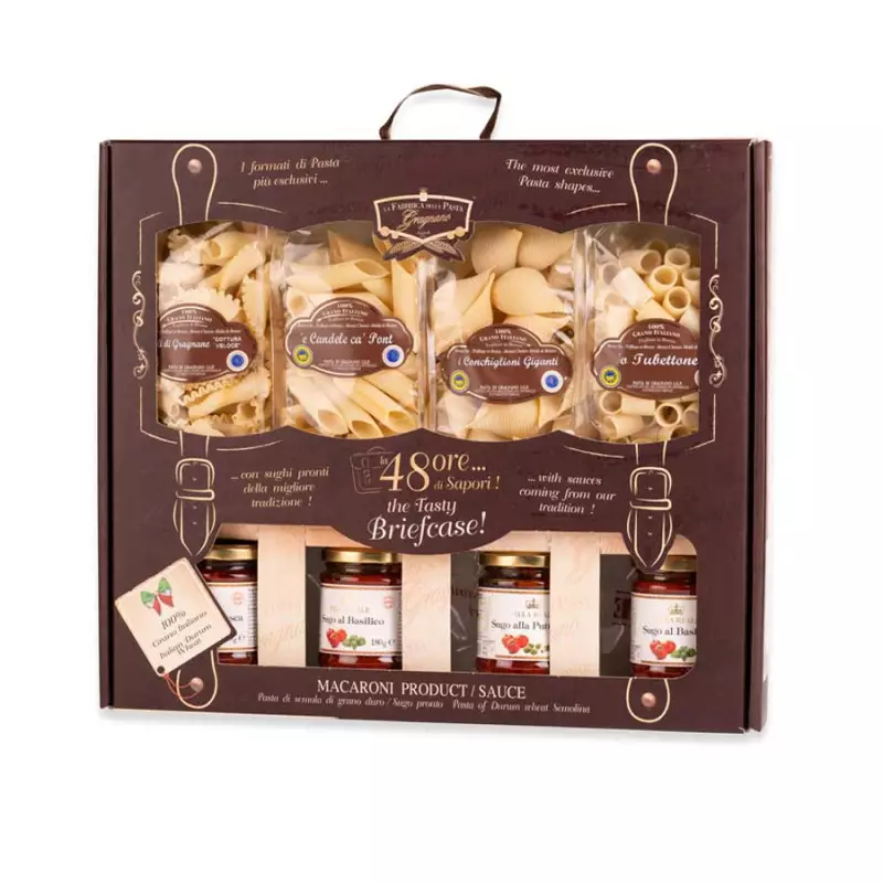 The tasty 48-hour gift pack of flavors from the Fabbrica della Pasta will give you the opportunity to experience an authentic dish Made in Italy thanks to the fantastic combinations of Gragnano pasta, in its most exclusive formats, and ready-made sauces of the best Italian tradition.