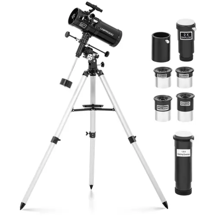Que ce soit à l’observatoire, à l’université ou au travers de la lucarne du grenier : avec le télescope UNI_TELESCOPE_08 d’Uniprodo, la référence en matière de télescopes, jumelles et optique, vous aurez l’impression de pouvoir décrocher la lune et les étoiles. Laissez-vous fasciner par l’univers !