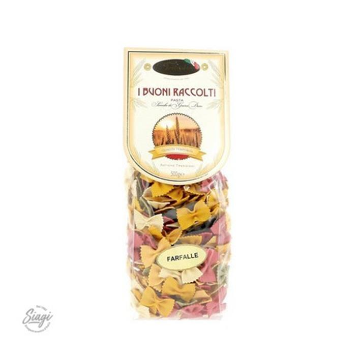 Ingrédients : Semoule de blé dur, eau, poudre de tomates 3%, épinards 1.5%, bettrave 1.5%, paprika 1.5%, curcuma 1.5%, encre de seiche 0.5%.