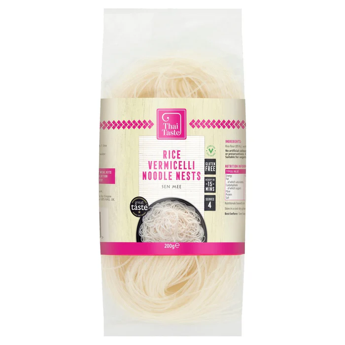 One of the main components of Thai cuisine, rice vermicelli noodles are widely used in both hot and cold dishes. Highly versatile and naturally gluten free, they are made from a paste of rice flour and water that is steamed, formed, cut and then dried. Our vermicelli noodles are ideal for soups, salads and stir fry’s. Great taste 2017, Ready in 15 mins, Gluten free, No artificial colors, flavorings or preservatives, Suitable for vegetarians & vegans.