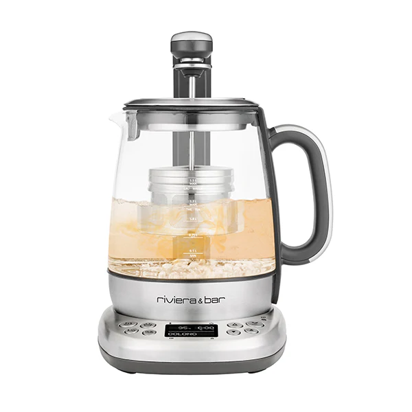 La théière Cha Dao Expert de Riviera & Bar est conçue pour offrir une expérience de thé exceptionnelle, grâce à ses cinq programmes avec température et durée d’infusion prédéfinies et ajustables.
