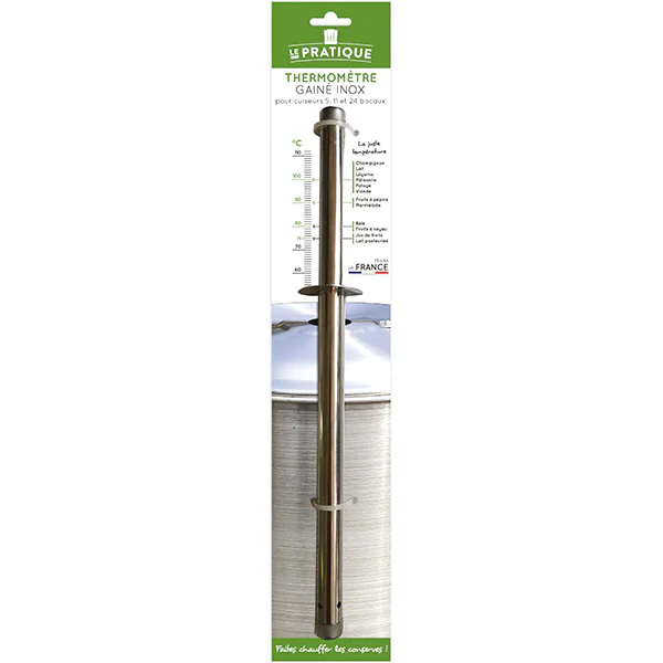 Ce Thermomètre gainé pour cuiseur de la marque Le Pratique est idéal pour surveiller la température lors de la stérilisation. Pratique, il vous suffit de le positionner au centre de cuiseur afin de contrôler parfaitement la température en vue de réussir vos conserves ou confitures. En inox, il est robuste et se nettoie facilement.