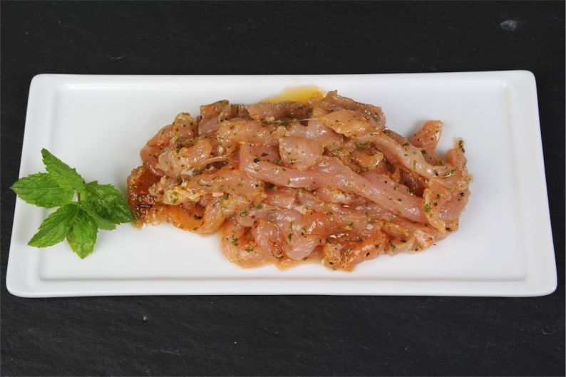 Fines lamelles de filet de volaille marinées