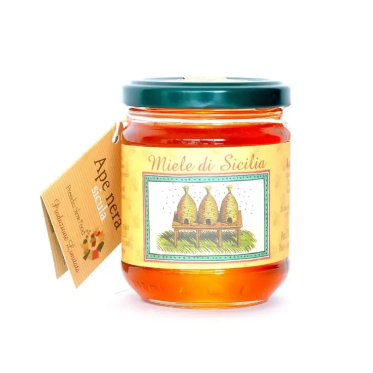 Apicoltura Carlo Amodeo boasts a production of the finest and most typical Sicilian honeys from the native Sicilian bee, the Black Bee (Apis mellifera siciliana), also declared a Slow Food Presidium. Defined as black because of its dark colour, the Sicilian bee is distinguished by some important peculiarities such as productivity and earliness. Moreover, the Sicilian bee has a very low honey consumption and a strong ability to develop from small nuclei.