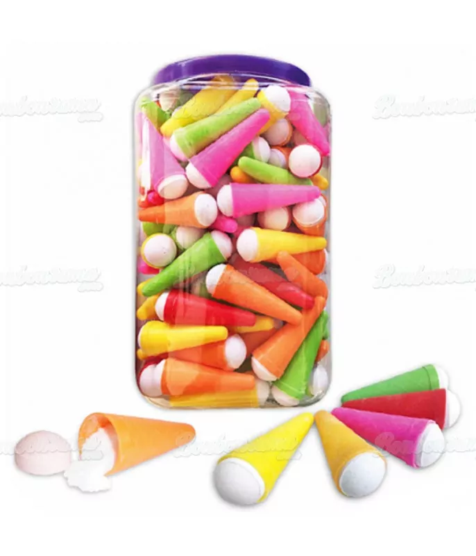 PATRELLE – Top Cône Zip Zap en Dextrose rempli de poudre à croquer – Vendu en gros conditionnement dans un tubo contenant 150 unités