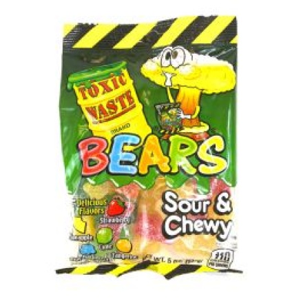 Become a Toxie Head with these Toxic Waste gummy bears! Each ultra sour gummy bear is strawberry, pineapple, blue raspberry, lime, or tangerine flavored for a super fruity twist!