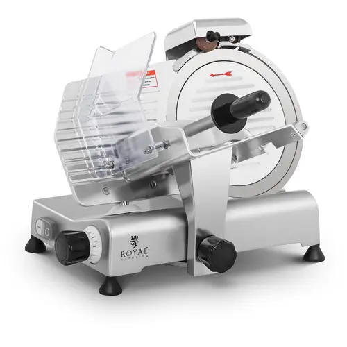 Cet appareil est équipé d’un moteur électrique de 150 W entraînant la lame à une vitesse de 480 tr/min qui promet une coupe extrêmement rapide et précise. En raison de ces performances, la lame circulaire de 250 mm tranche les fromages les plus durs comme si c’était du beurre. Le modèle RCAM-250E permet de réaliser des tranches d’une épaisseur de 0 à 8 mm, réglage modifiable en continu à l’aide d’une molette. Ainsi, vous pouvez offrir de tout à vos clients et invités : des tranches de jambon délicates aux tranches de saucisson gourmandes. La trancheuse à jambon convient à la coupe des saucissons et fromages d’une largeur maximale de 17,5 cm et d’une hauteur maximale de 14 cm.