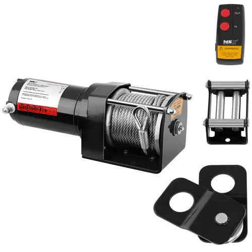 À l’aide de ce treuil électrique, vous pourrez dépanner des véhicules sur des terrains accidentés en un tournemain. Le moteur d’une puissance de 1,3 ch ainsi que le câble en acier d’une longueur 12 mètres vous seront d’une grande aide. L’appareil se distingue en outre par sa force de traction de 1 590 kg/3 500 lbs. Le treuil peut être monté sur un quad, un véhicule tout-terrain, une remorque ou un véhicule 4×4. Il peut aussi être utilisé à la maison ou dans le secteur forestier.