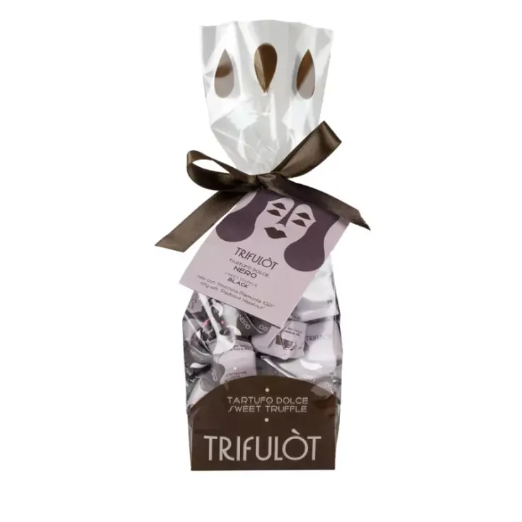 Tartufi Dolci Neri Trifulòt Tartuflanghe are delicious chocolate pralines containing 36% IGP Piedmont Hazelnuts. With their unmistakable taste, they are perfect in combination with coffee. Trifulòt Neri were even awarded the International Chocolate Award, an achievement that confirms Tartuflanghe’s commitment to the highest quality. The ‘IGP Piedmont Hazelnut’ used for these pralines is harvested, selected and inspected by hand. Grown on the hills of the Alta Langa, it is considered the best hazelnut in the world for confectionery thanks to its characteristic flavour and unmistakable aroma.
