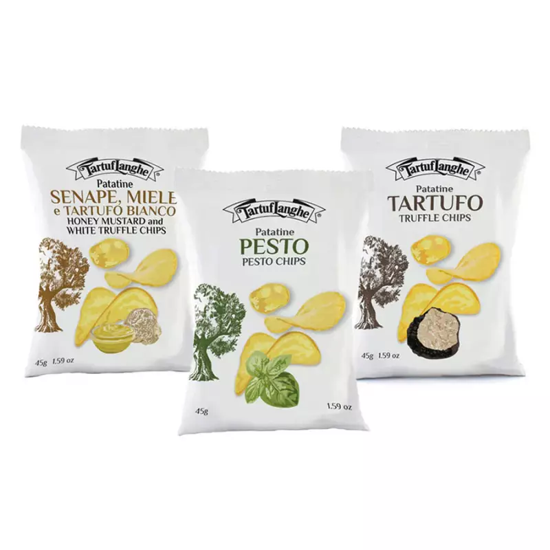Tris Gourmet Chips Tartuflanghe: Truffle, Pesto and Mustard, Honey and White Truffle 45 gr x 3