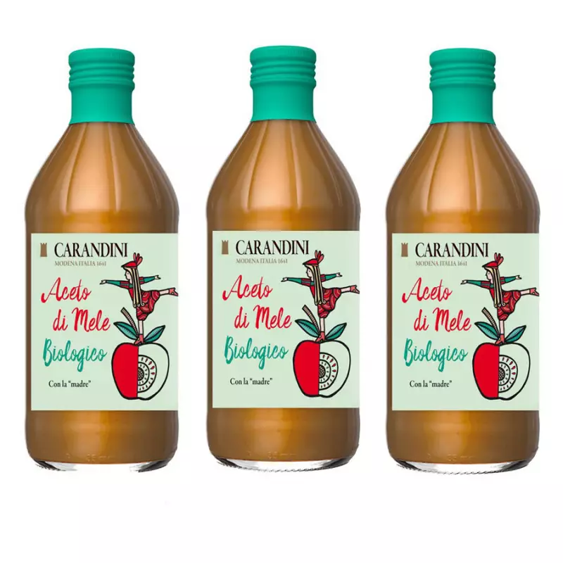 Carandini Organic Apple Cider Vinegar with ”the mother” has a delicate, fresh aroma, very well-balanced and slightly pungent.
