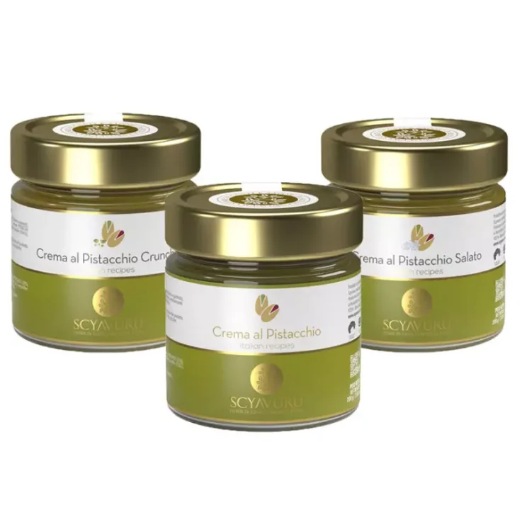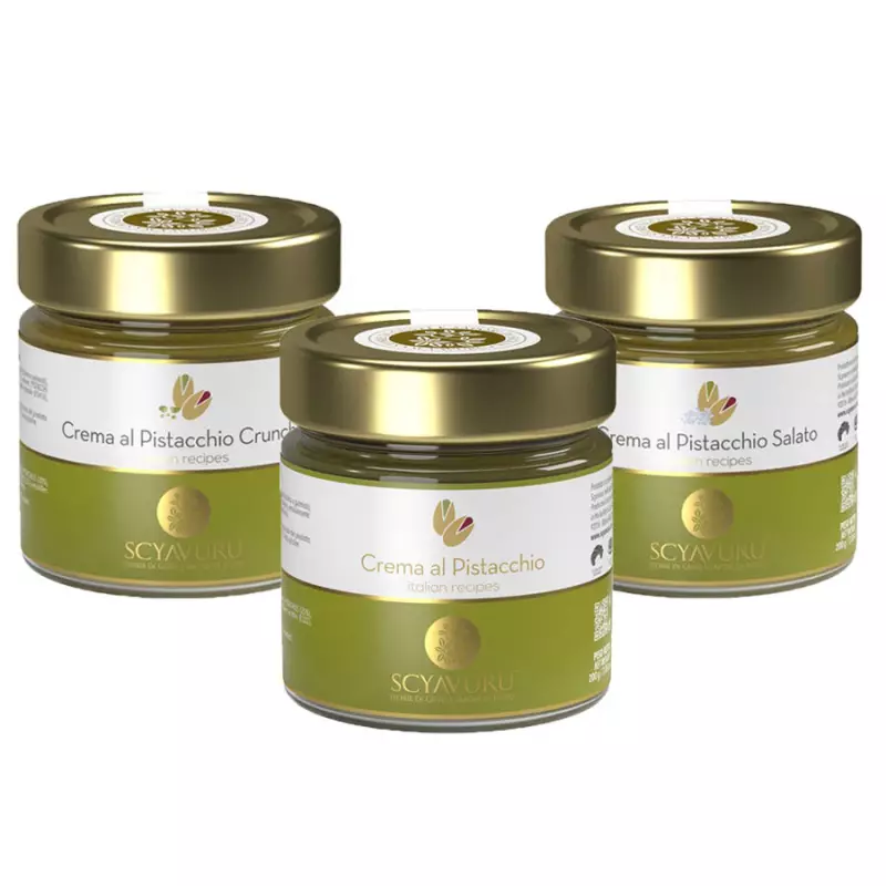 Let yourself be seduced by the magic of pistachio with our exclusive promotional set of Pistachio Scyavuru Creams, designed to give moments of pure sweetness to all pistachio lovers. A sensory journey through three irresistible variants, each one capable of making you fall in love at first taste: