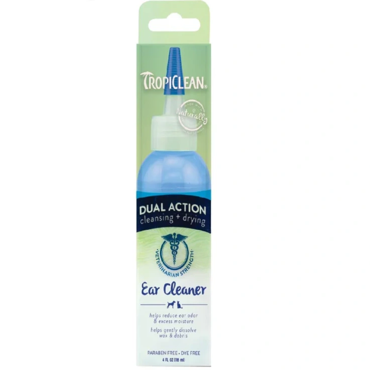 TropiClean 2x Ear Cleaner safely dissolves wax and removes debris while reducing odor to keep their ears clean and healthy. Our cleansing formula quickly dries to help reduce excess moisture and prevent ear infections. Tip: Use after bathing or swimming to help remove water trapped in their ears, which can lead to infections. Safe for routine cleaning, helps reduce and soothe ear infections, dries quickly, use after baths or swimming, soothes and reduces itching.