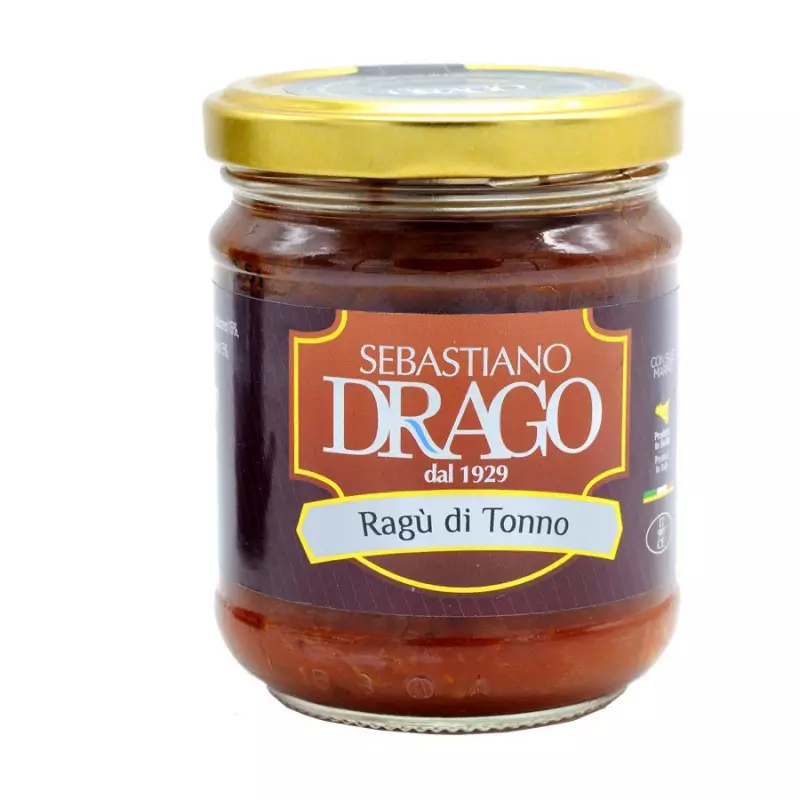 Sebastiano Drago’s Tuna Ragout 190 gr is a rich and genuine condiment, prepared according to Sicilian tradition to bring out the authentic flavour of the sea. It is made with selected, cooked and filleted tuna, which is combined with a few simple, high-quality ingredients such as tomato puree, olive oil and a touch of chilli pepper. Practical and ready to use, it is the ideal solution for bringing a tasty dish to the table in just a few minutes, without sacrificing quality and tradition. Its strong and enveloping flavour makes it perfect for enriching your first courses with a refined and authentic touch. Like all Sebastiano Drago sauces, it has no added starches or flavour enhancers, to guarantee you a natural and genuine product.