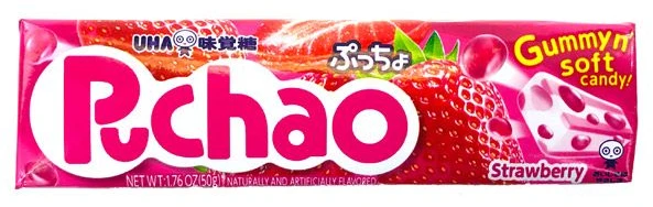 These yummy chews are addicting! Individually wrapped, so you can share if you want, or save for yourself for later. They have a truly unique strawberry flavor. Fun fact: There are many different flavors of Puchao that can be divided into two categories: Fruit and Soda.