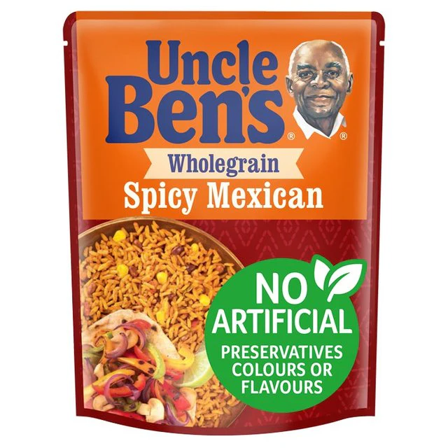Great rice deserves something special. Our authentic Wholegrain Spicy Mexican rice, with carefully selected red peppers, chillis and adzuki beans (and a bit of Uncle Ben’s® know-how). Simply no need for artificial flavours, preservatives or colours. Perfect in 2 minutes, No artificial colours, flavours or preservatives, Suitable for vegetarians
