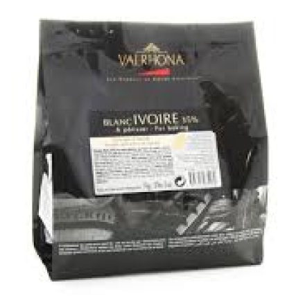 Valrhona ivoire contains a minimum of 35% cocoa butter which helps the chocolate melt and flow in baking, and gives the white chocolate its creamy taste. The individually moulded chocolate chips are easy to weigh out and very quick to melt with their trademark Valrhona feves or bean shape.