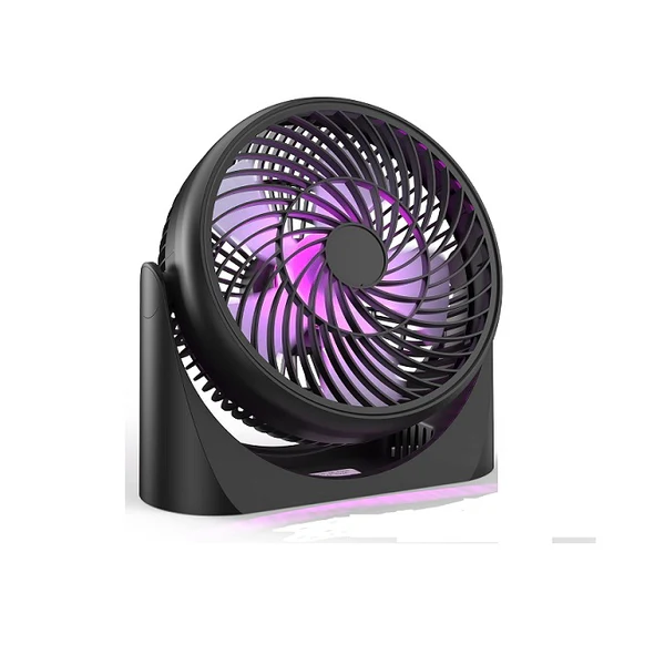 Équipé d’un moteur sans balais, ce ventilateur silencieux peut générer un flux d’air jusqu’à 11,8 pieds/s pour assurer un refroidissement agréable dans une pièce de petite ou moyenne taille. 3 vitesses optionnelles et une tête pivotante à 360° répondront à vos besoins pour différentes occasions.Une fonction de minuterie est intégrée au ventilateur, ce qui vous permet de contrôler les heures de fonctionnement du ventilateur. La minuterie est disponible pour une, trois et cinq heures. Une fois la durée programmée écoulée, le ventilateur s’arrête automatiquement.Avec la lumière RGB de conception unique, qui a 3 modes d’éclairage réglables et 5 réglages de luminosité, vous pouvez choisir d’avoir une lumière monochrome rouge, blanche, verte, jaune, violette, bleue, cyan, ou de changer automatiquement les couleurs progressivement ou en respirant, pour créer une ambiance romantique pour votre nuit ou pour fournir la lumière dont vous avez besoin lorsque vous vous levez la nuit.Vous pouvez contrôler le ventilateur à une distance allant jusqu’à 20 ft. à l’aide de la télécommande fournie ou simplement en appuyant sur les boutons situés à l’arrière de la tête. Sur la base se trouve une rainure dans laquelle vous pouvez ranger la télécommande ou de petits objets pour organiser les choses.