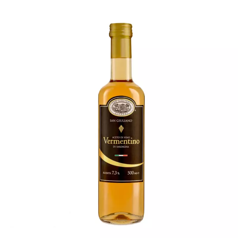 Vermentino white wine vinegar by San Giuliano is characterized by the typical aromatic and slightly acidic flavor of Vermentino white grapes of Sardinia. Thanks to its delicate taste that does not cover the flavors, it is suitable for marinating fish, summer vegetables and sauces, it is also an excellent condiment to enhance the taste of seafood salads and fresh vegetables.
