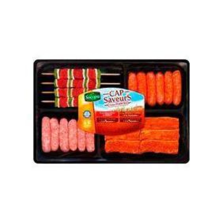 Viande de porc assaisonnée + chipolata + merguez + brochette de boeuf,SOCOPA, barquette 810g