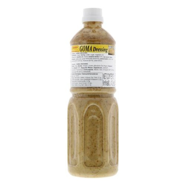 Ingrédients: vinaigre, eau, sucre, huile végétale (colza, graines de sésame), sésame (9,50%), sauce soja, jus de pomme, assaisonnement de raisin fermenté, beurre d’arachide, alcool, sel, émulsifiant (esters de saccharose d’acides gras, mono- et diglycérides de acides gras, moi estérifié), exhausteur de goût (glutamate monosodique), épaississant (gomme xanthane), extrait de levure