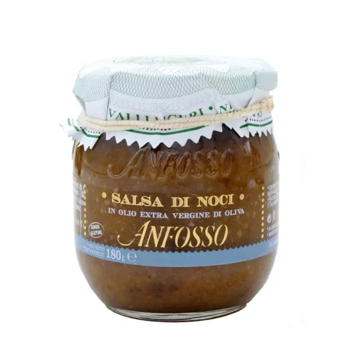 Walnut Sauce is a typical sauce of Liguria region which is used with Pasta, gnocchi, Ravioli or the typical ligurian shape “trofie”. Its creamy but savoury taste is ideal to serve a tasty first course dish which is different from usual sauces.