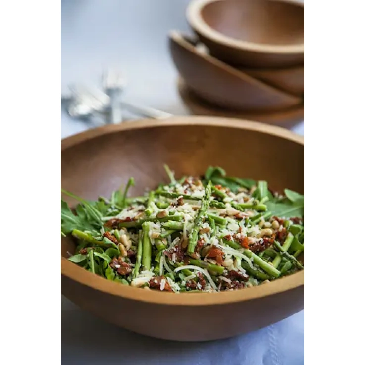 Once the asparagus is roasted, cut it into 3-inch pieces. Add them to the salad.