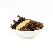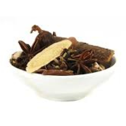 Ingredients: Cao guo, dried bay leaves, sichuan peppercorns, fennel seed, star anise, cinnamon bark (cassia), dried orange peel, galangal, liquorice
