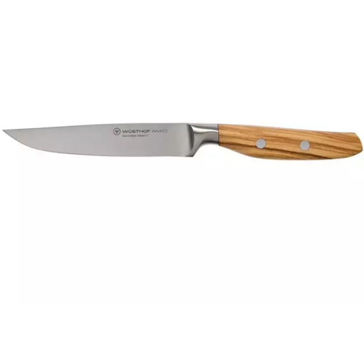 Ce couteau à steak Wüsthof Amici est parfait pour les amateurs de viande. Conçu pour couper facilement un steak ou un autre type de viande sans le déchirer. C’est le résultat de la lame lisse et tranchante comme un rasoir que vous pouvez facilement affûter vous-même si nécessaire.