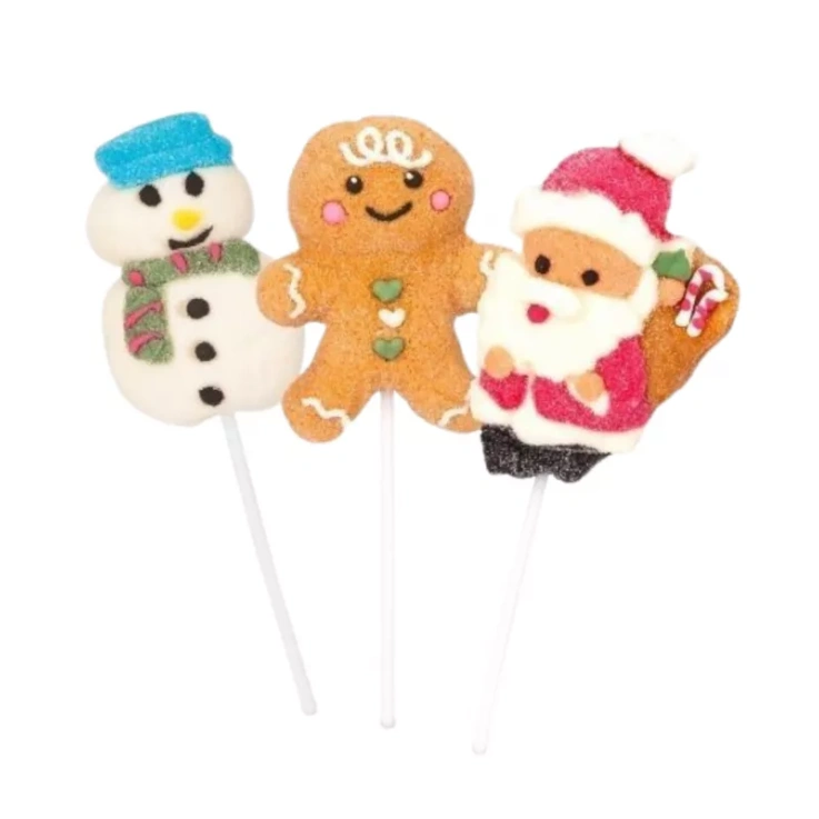 FIZZY – Grande sucette en Marshmallow sur le thème de Noël vendue en gros conditionnement dans un présentoir de 18 sucettes