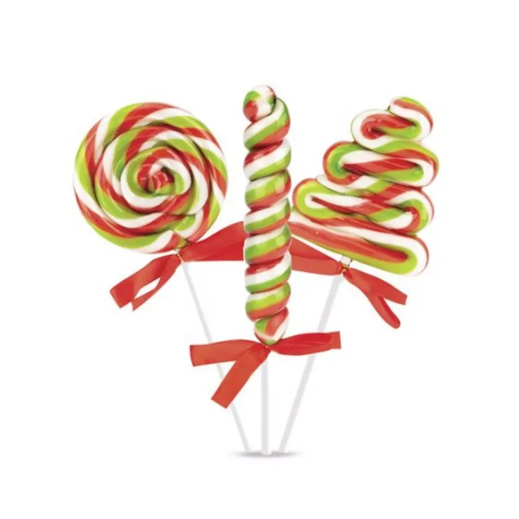 FIZZY – Sucette torsadée individuellement sur le thème de Noël vendue en gros conditionnement dans un présentoir de 18 sucettes