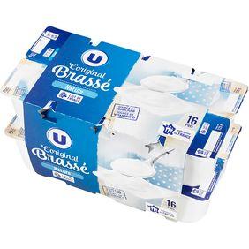 Yaourt brassé nature U 16x125g LAIT entier, protéines de LAIT, ferments (dont LAIT) vitamine D.