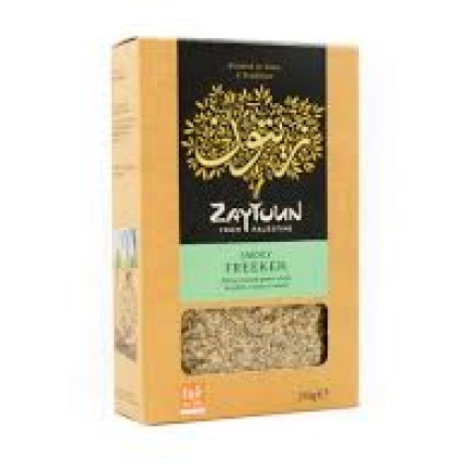 Freekeh is durum wheat that is harvested whilst still green and roasted on an open fire. It is rubbed (fareek) to remove the husk and reveal the aromatic grain packed with protein and fibre. Traditionally freekeh is slowly simmered in stock for a nourishing soup – a Palestinian staple for centuries. However, today it is often used in pilaf, risottos and salads.