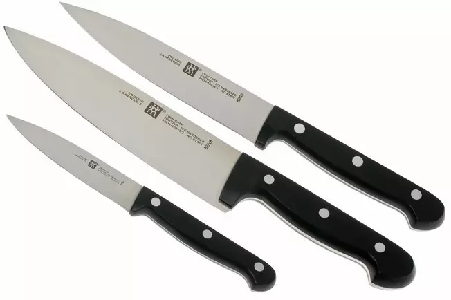 Le set de couteaux 3 pièces Zwilling Twin Chef est un set de couteaux de cuisine pratique pour chaque tâche dans la cuisine. De la coupe de la viande et des légumes à la coupe fine des herbes ou de l’ail.